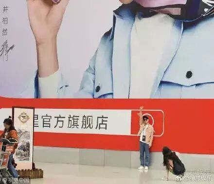 在机场,井柏然还偶遇自己的广告牌,上前与“自己”合影,女友倪妮则变成了摄影师,蹲在地上为井柏然拍照。