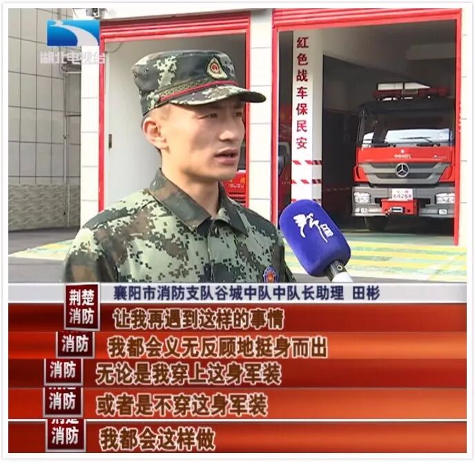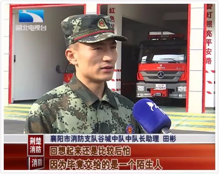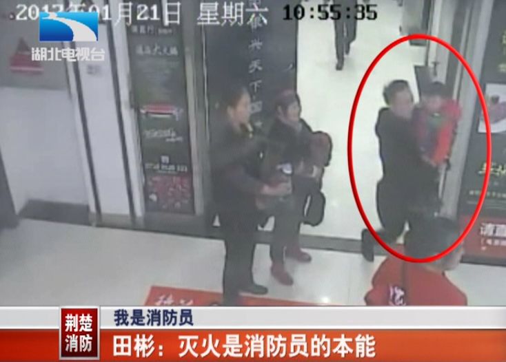 田彬“托子救火”的举动刚好被网友和监控拍到,上千万网友纷纷为其爱心举动转发点赞。但对于田彬来说,将孩子交给路人而自己去灭火,只是出于“职业的本能反应”。2013年,新华社刊发了一张触动人心的图片:一名消防战士怀抱一个小女孩,奋力向前冲,救人的正是田彬。当时他在襄阳酒店火灾现场,奋力救下7人,一度因体力透支晕倒。对于工作,拼尽全力,对于妻子,田彬满是愧疚。