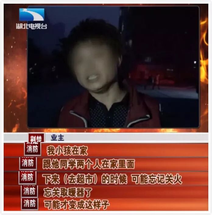 今年2月9号,广西河池一高层住户家中起火,原因是小孩出门忘记关取暖器。