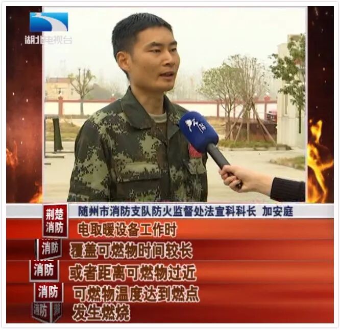 “今天我来到了随州市消防支队随县大队,在我手上是拿着一个常见的取暖器,那这个取暖器如果使用不当的话,同样也会引发火灾,那接下来我们通过实验来告诉您。”