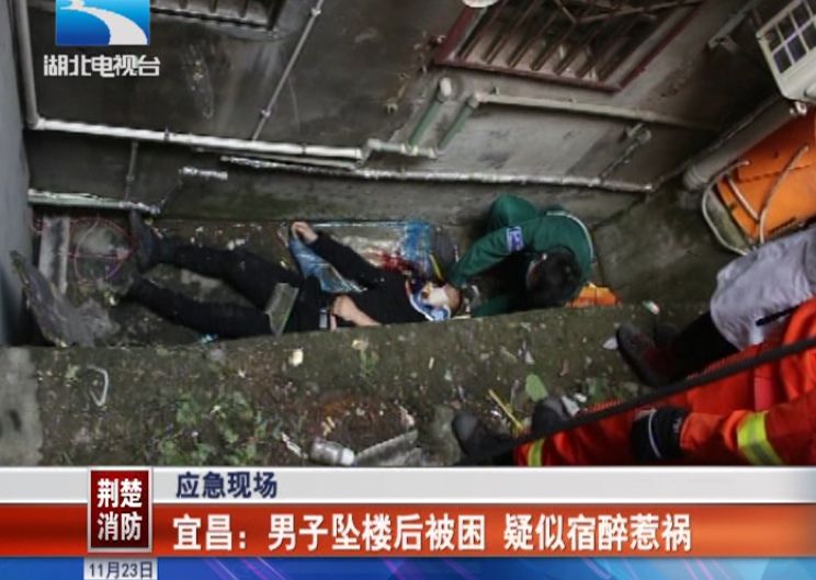 宜昌:男子坠楼后被困 疑似宿醉惹祸