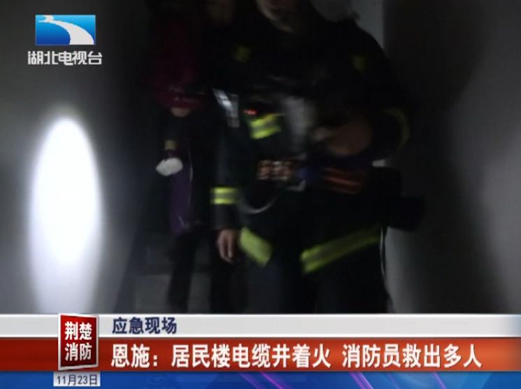 11月15号晚上11点,恩施市航空路一小区电缆井起火,消防员到场后先通知物业断电,利用一楼室内消火栓出水灭火,同时对现场进行排烟。在地毯式搜救过程中,10多名被困人员被转移至安全地带。经过1个多小时的紧张扑救,火势被成功扑灭。