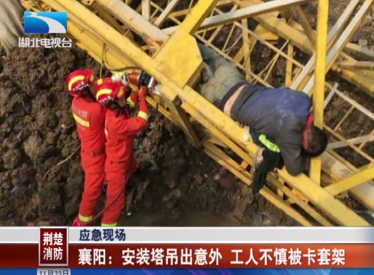 襄阳:安装塔吊出意外 工人不慎被卡套架