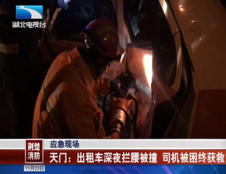 天门:出租车深夜拦腰被撞 司机被困终获救