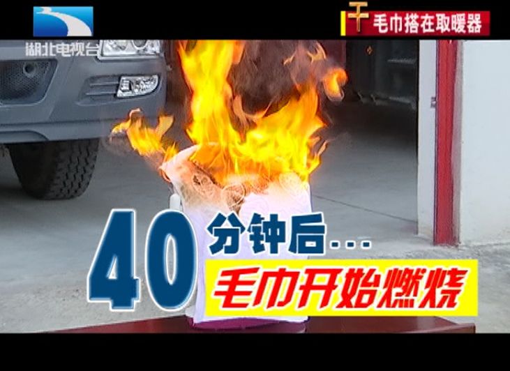 2分钟后,毛巾开始冒白烟。6分钟后,毛巾被烤焦了一块。40分钟后,毛巾开始剧烈燃烧。如果没有消防员及时救援,这后果不堪设想啊!