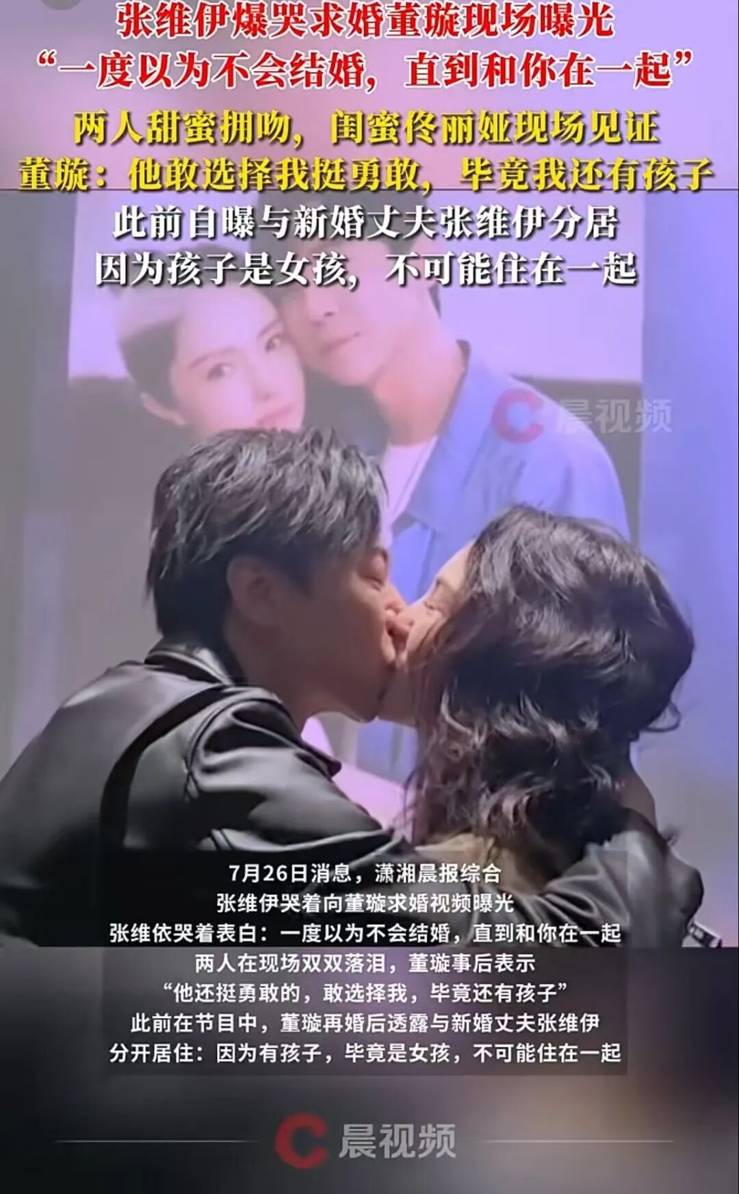再到7月26号被网友爆出“董璇被张维伊求婚现场”。