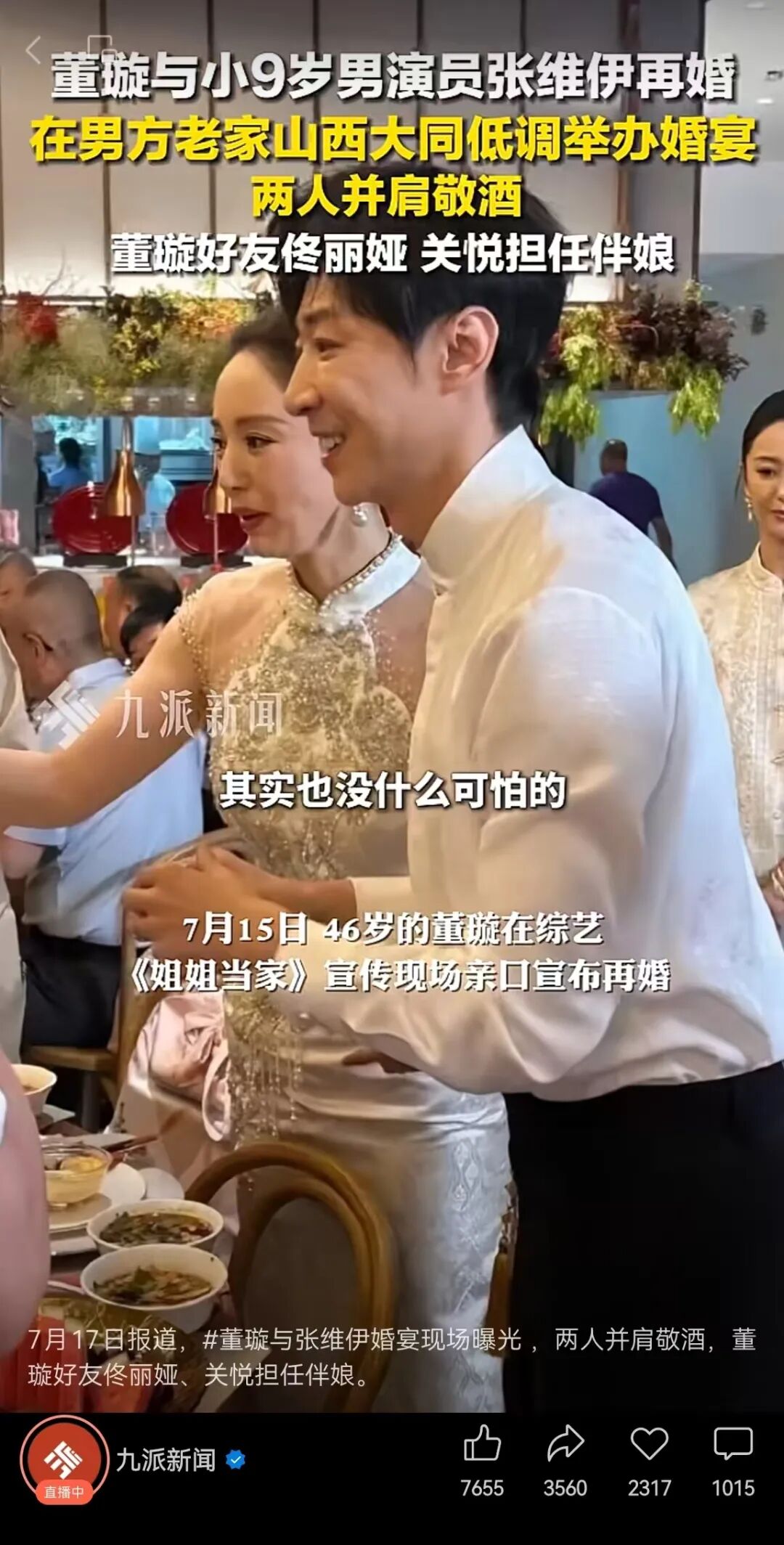 7月15日,董璇在《姐姐当家》媒体看片会时宣布“再婚”,引爆全 网。