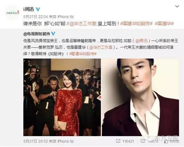 而在《如懿传》官方微博公布了这一消息后,霍建华的经纪方华杰工作室也替没有微博的“老干部”证实了这一消息,该微博转发了《如懿传》官博的微博,并俏皮的称:“皇上驾到!”困扰了网友许久的《如懿传》人选问题,终于水落石出。