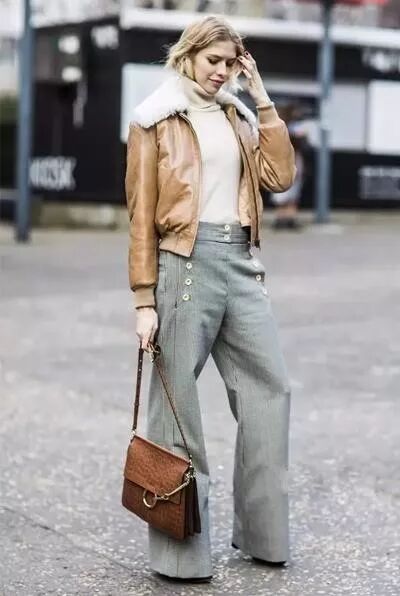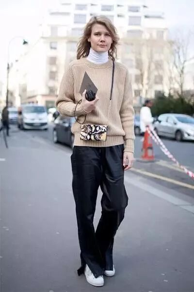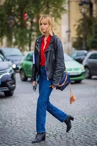 巴黎街头最常见的搭配,中性和硬朗的气质让她们看上去更具魅力。