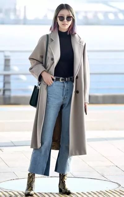 黑色毛衣加条牛仔裤,很简单,但是外搭一件风衣后,气质有了,气场也有了。