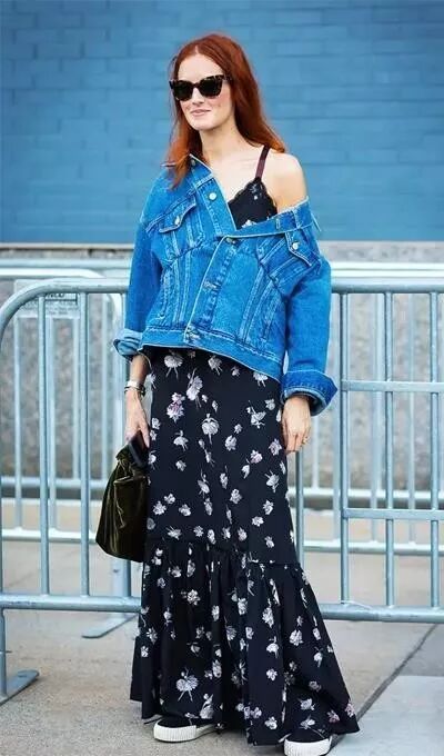 牛仔外套是每个女孩衣橱里的必备单品,将酷酷的牛仔与柔美连衣裙配在一起,别有一番风情,轻松穿出时髦气息。
