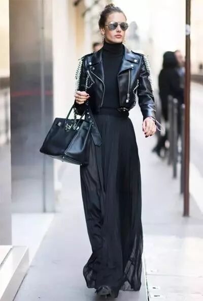 你可以来高调的尝试一款机车皮夹克!穿着美美的连衣裙,再加一件皮衣,刚柔并济,瞬间变成时髦百变的女骑士!
