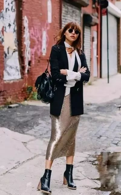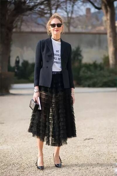 谁说西装只能配西裤,搭配纱裙,弱化了正式感,增强了柔美感。