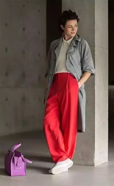 红色自古以来就代表着妖艳,搭配一件灰色风以后,瞬间感性了起来。
