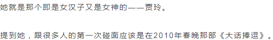 再后来,让观众更加了解她的是和搭档白凯南参加了湖南电视台的《百变大咖秀》,在里面通过模仿各类名人,贾玲充分展现了自己的喜剧天赋。