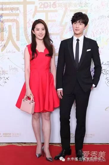 总有人说刘亦菲残了,变丑了,可是每次神仙姐姐一收拾总能艳惊全场,一条红色连衣裙配粉色手提包,明艳照人,就是鞋子配得有点老气,和杨洋真是一对高颜值CP。