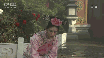 被皇帝逼嫁十四爷,若曦不肯被罚跪,抬头看见雨中出现的四爷时眼中一刹那的惊喜,又转为满腹的委屈,热泪盈眶,但内心执拗的性格,还是没让眼泪落下了。