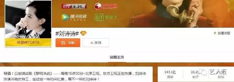 光网友们发起的#刘诗诗#话题,阅读量累计超过143亿。