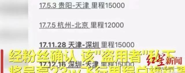 不仅用他的积分兑换机票,还盗用了他的里程,去追其他明星的行程。