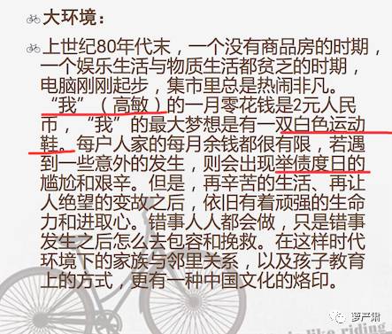 女主角叫高敏,一个月零花钱两块,梦想是白色运动鞋,会有举债度日的艰辛……