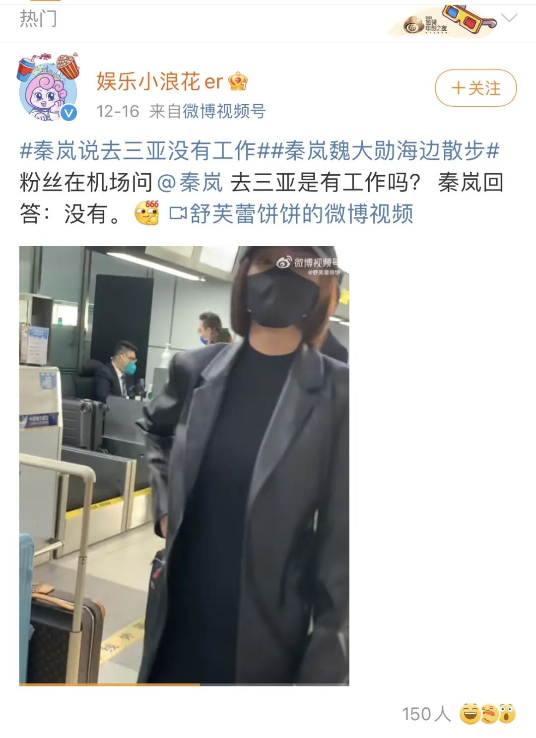 还有网友晒出她之前在机场偶遇秦岚的视频,询问“姐姐,你去三亚是有工作吗?”