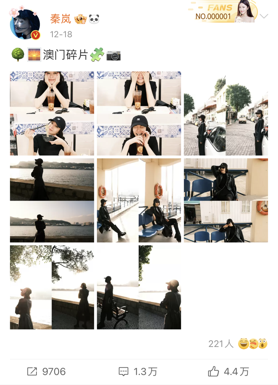 恋情曝光的第三天,她一如往常地在社交平台发布了自己在澳门的美丽照片。