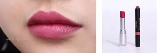 欧尼的这款霸气唇色是黛珂的两款新色号叠加涂出的效果,用豆沙色(RO650)打底,上面叠加浆果色(RD456)。