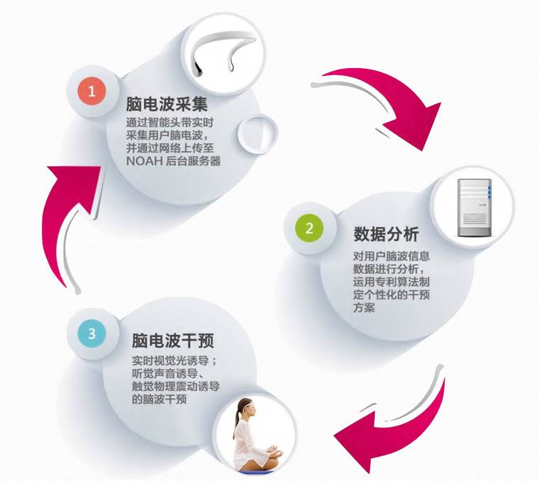 冥想大师是一款将现代生物科技和神经系统科学与东方传统养生智慧相结合的产品,主要包括智能头戴、瑜伽垫(或者沙发)以及客户端App,用于搜集、分析、干预脑电波,来治疗抑郁失眠等。