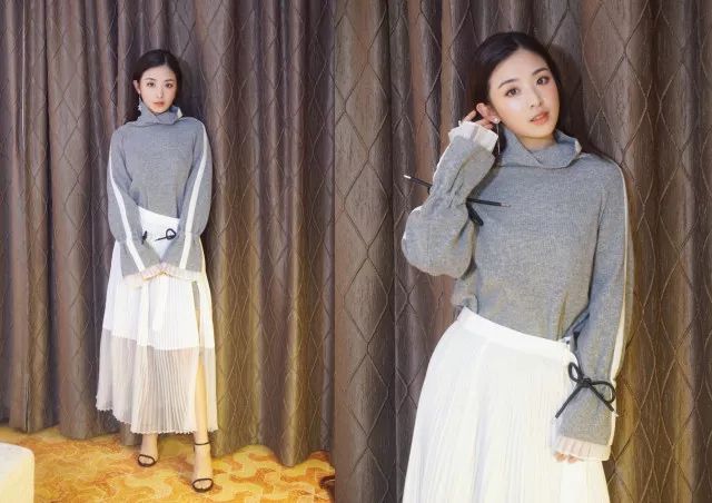 灰色针织衫搭配半身纱裙,甜美的妆容格外好看,带点稚嫩少女感~