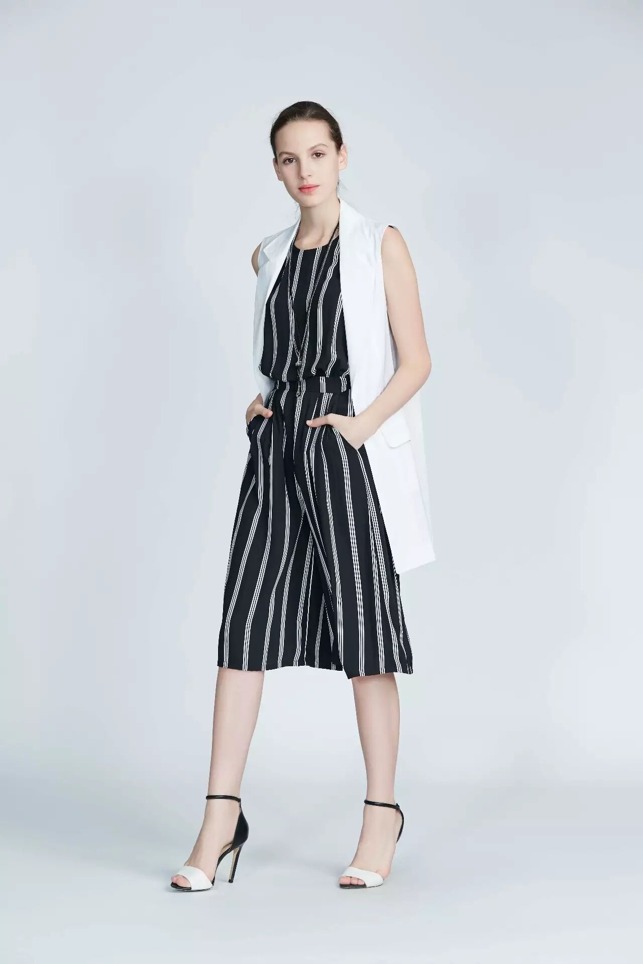 在巴黎时装周的外拍中,陈妍希身穿LIME FLARE2016年夏季新款条纹马甲与连体裤,以清新甜美的沈佳怡角色出道的她已经出落的精致干练。印花黑白条纹一直是中性的代表,是国际潮流趋势中“中性风潮”中重要元素,展现女性特有的率性和气场。