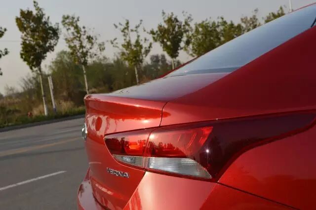 鸭尾的后备厢设计使得整车富有时尚运动范儿,稍微向上鼓起的后备箱盖起到了一些尾翼的作用。由于价格便宜,后车灯没有使用当下流行的全LED灯组,依然使用了卤素灯源。