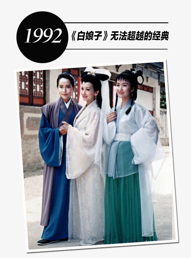 1992年赵雅芝应邀出演的《新白娘子传奇》再次轰动大中华地区,其中的造型和歌曲都被无数次的拿来模仿甚至吐槽,当时的赵雅芝已近40岁,但依旧美丽优雅,她所饰演的白娘子已然成为无法超越的荧幕角色。