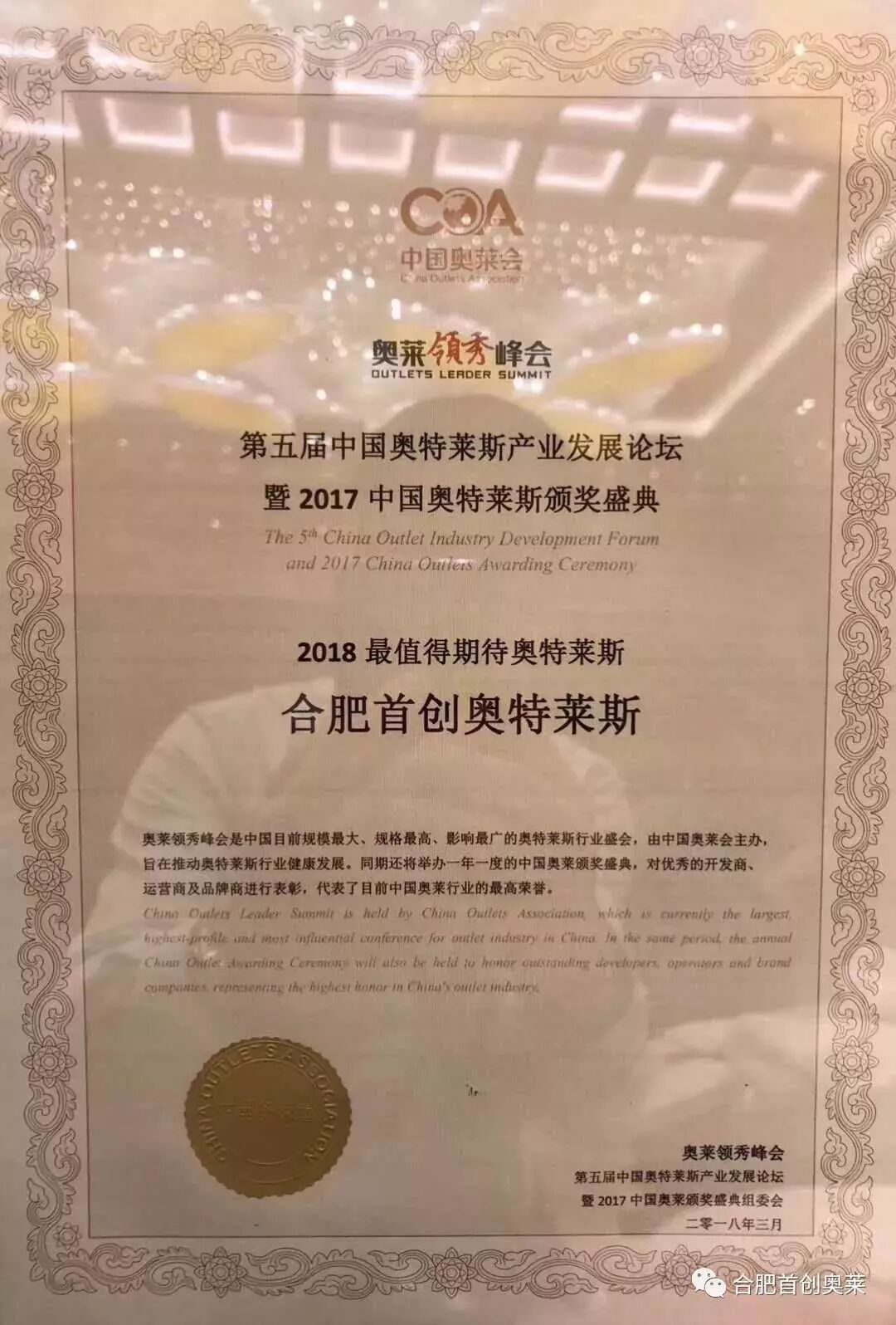 荣获2018年 值得期待的奥特莱斯的