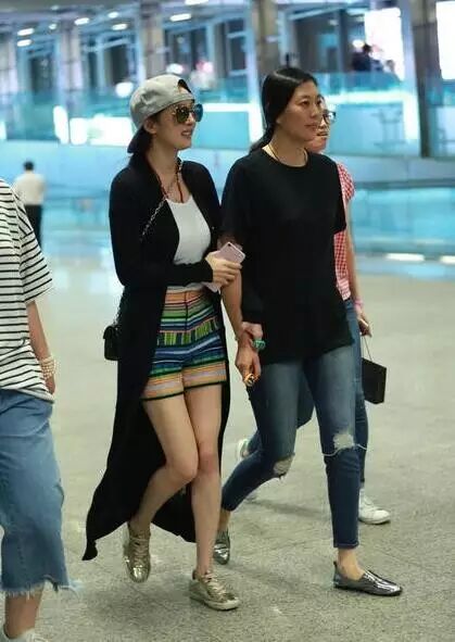 8月9日七夕节当天,杨幂身着条纹短裤、黑色长款外套、反戴棒球帽与友人亲密挽手,一路热聊心情大好。