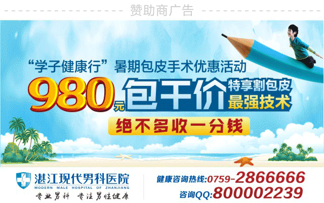 湛江现代男科医院是粤西首家专业男科医院,如果您患有前列腺炎、阳痿早泄、包皮包茎、泌尿生殖感染、男性不育等疾病,可拨打健康热线:0759-2866666免费咨询或预约专家,也可点击左下角【阅读原文】进入网上咨询及预约平台。