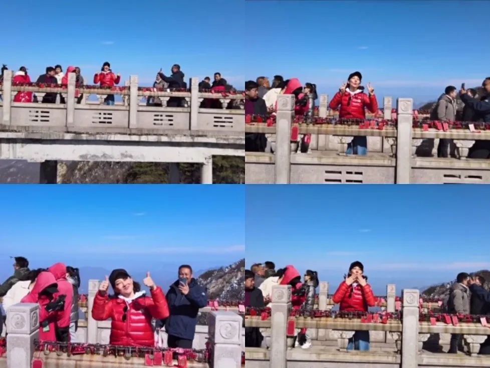 绕老君山一周之后,无人机再次折返。牛莉看起来心情大好,对着镜头摇晃身体、比耶点赞、嘟嘴卖萌、飞吻吐舌,一连串动作做下来简直是可爱极了。