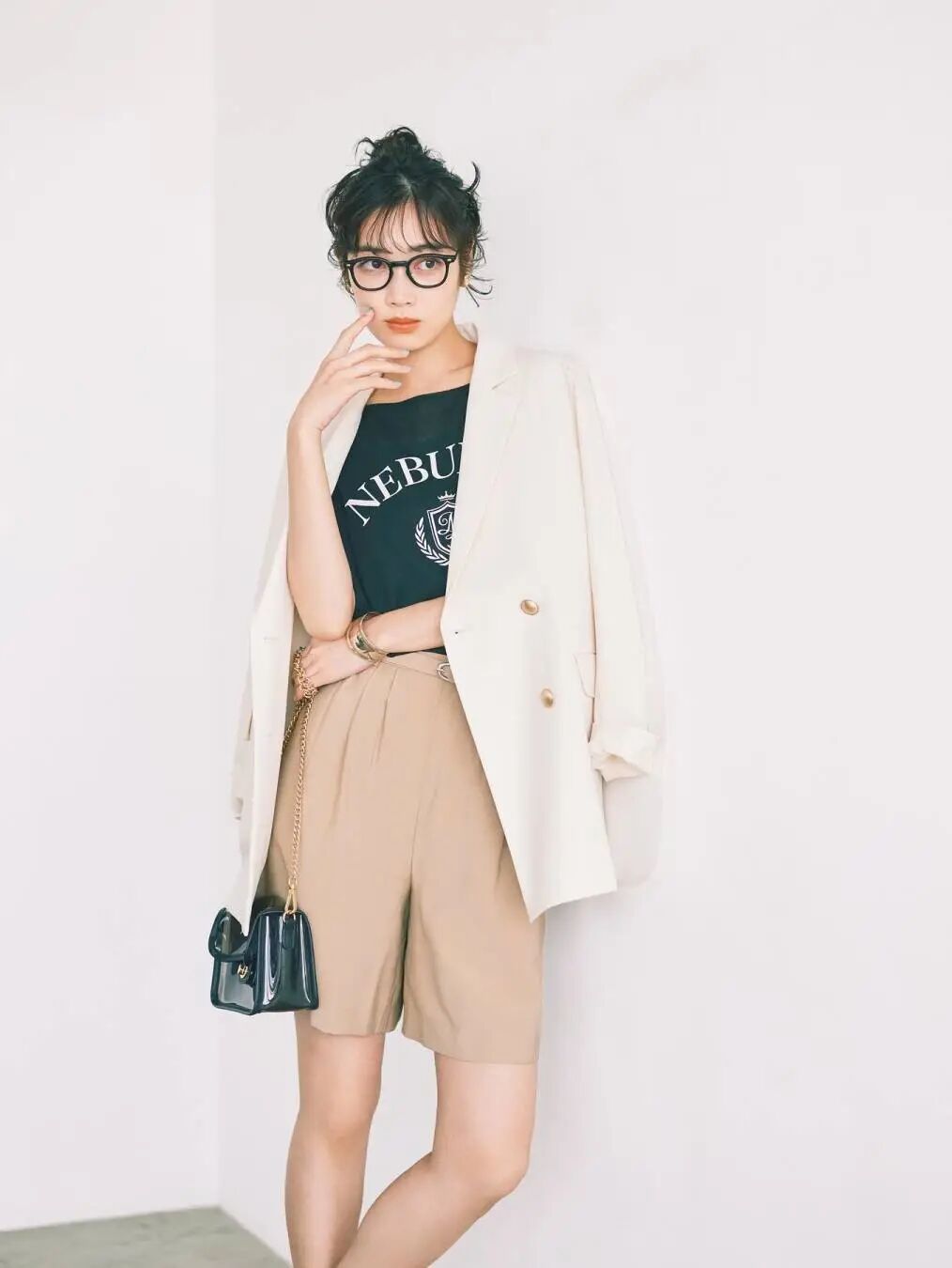 周雨彤在剧里穿过另一件西装,也是 ANINE BING 的。从版型到胸前的打褶、袖子的卷边都很有辨识度,搭配白 T 恤,简简单单的时髦。