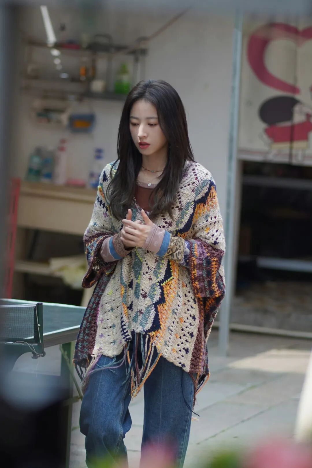 周姐在剧中穿过不少 Free People 的衣服,这件彩色钩编罩衫就很好看,几何、钩编、流苏元素互相碰撞,自由自在的假日气氛拉满。