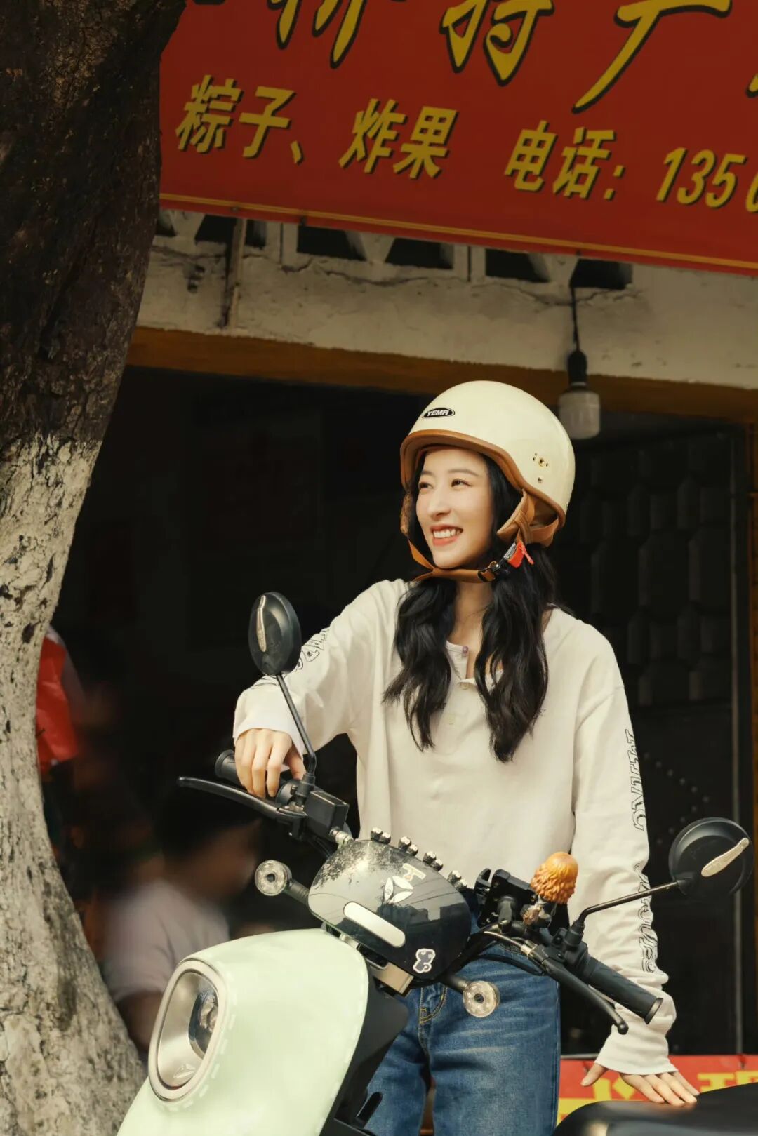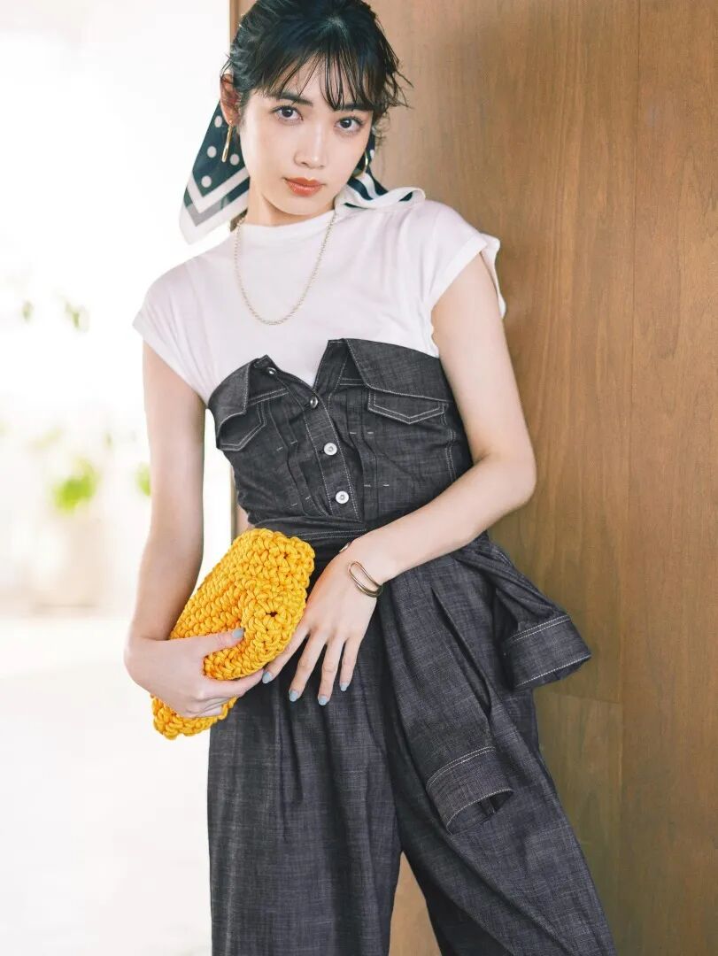 周雨彤在剧里剧外穿过好几次 45R,印象最深的是这条背带裤,比常见的款式更宽松,就像是偷穿了大人的衣服,自带俏皮与轻松感。