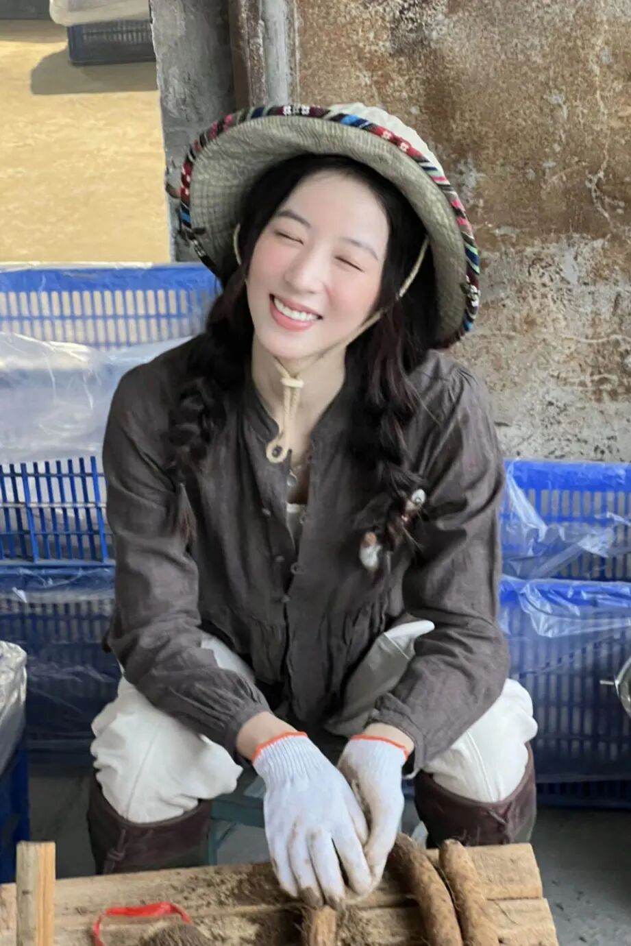 可爱小周帮羊角村卖山药时上身的这件法式衬衫和脚上的拼接长筒靴,也是 45R 的,价格分别是 3116 和 5040 元。
