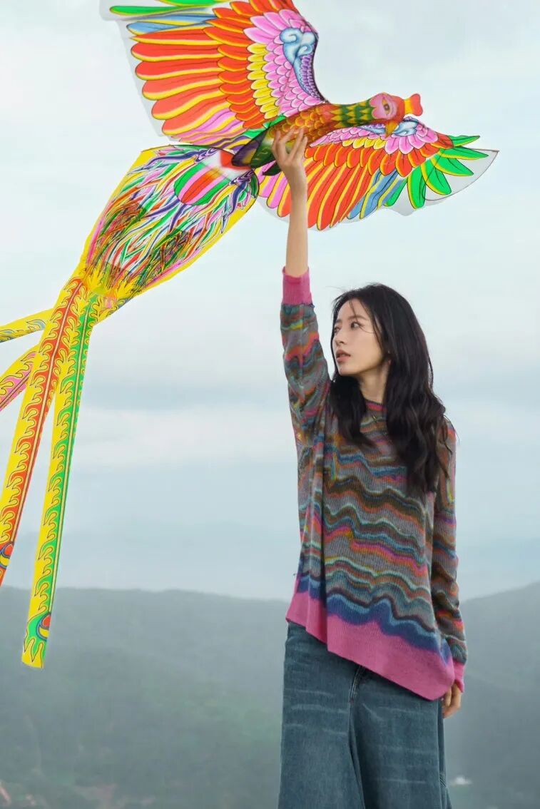 鹅娘却偏爱那些嬉皮调调的编织单品,五颜六色的,透着活力和自由。比如放风筝时穿的这件波浪条纹衫,是大家熟悉的 JNBY。