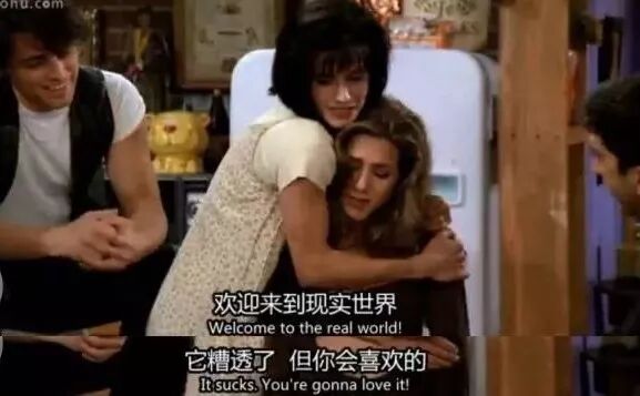 《老友记》里瑞秋逃婚,莫妮卡抱住她说,“欢迎来到现实世界,它糟透了,但你会喜欢的。”
