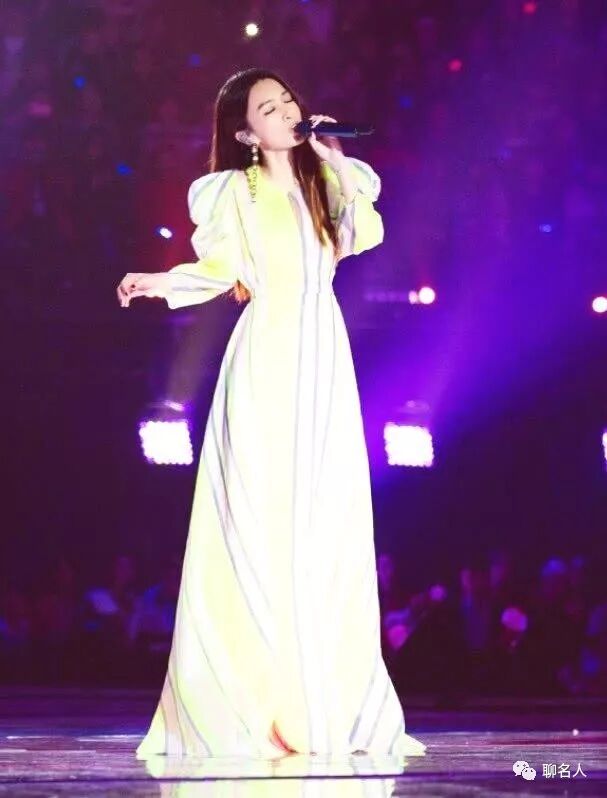 田馥甄身穿一件绿色的条纹长裙,不仅有清新淡雅的美感,还显得气质出众,散发出优雅的味道。一头乌黑的秀发散落在身上,微微仰起头,闭上双眼认真地唱歌,有一种迎面而来的美!