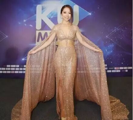 一身金色垂坠的连衣裙,还有披风,出席活动肯定是最亮眼的“星”。