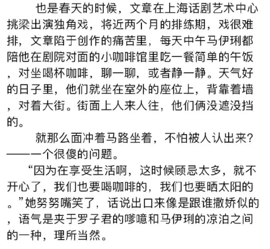 她在2017年的一次采访中,曾说过一个细节:她和文章每天中午,去小咖啡馆里吃一餐简单的午饭,就对着大街,没遮没挡,对坐喝杯咖啡,静一静,聊一聊。