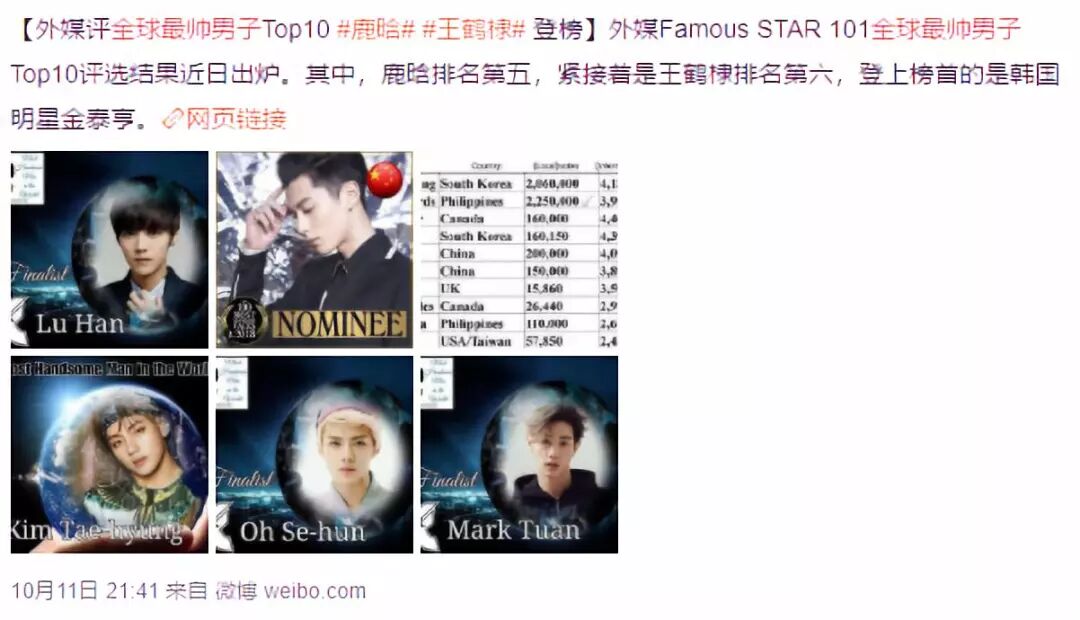 再下一个就是排在第五名的鹿晗了,