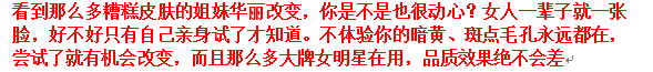 其实,港台明星在用,杨幂坦言当艺人经常风吹日晒,压力大,之前幂幂也经常长痘长斑。且生了小孩后更是对女人皮肤的严峻考验。最后选定了神仙贵妇膏,因为这是她长年累月使用各种高端护肤品中感觉最为有效的美颜品。