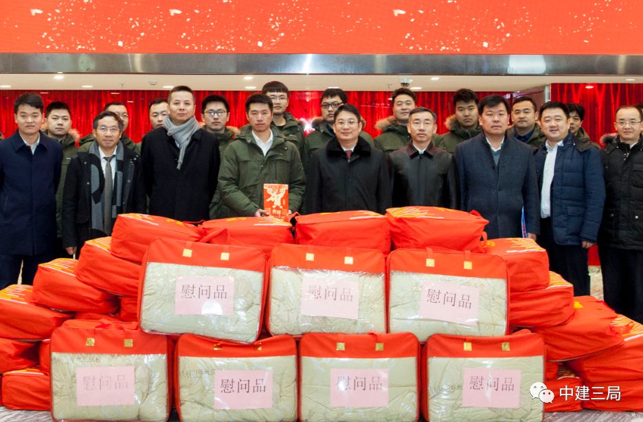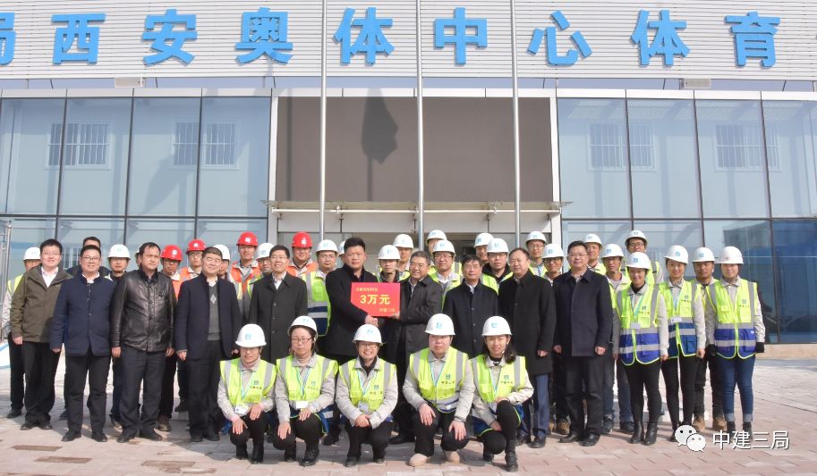 2月8日,中建三局副总经理、总工程师张琨,局副总经理魏德胜慰问西北公司西安京东项目、奥体中心项目建设者。(李浩源)