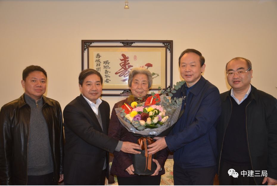 2月7日,中建三局董事长、党委书记陈华元,总经理易文权慰问局老领导、深圳市原副市长李传芳(中)。(郑如煜)