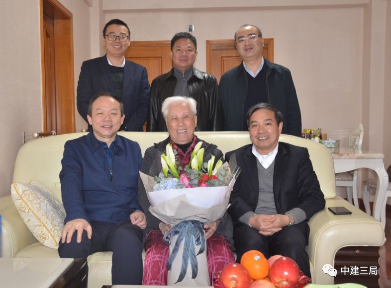 2月7日,中建三局董事长、党委书记陈华元,总经理易文权慰问局老领导张恩沛(前排中)。(郑如煜)